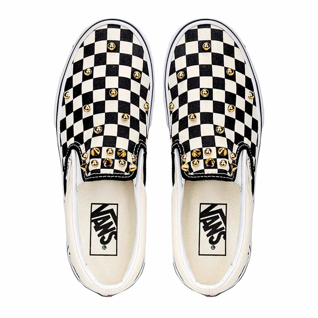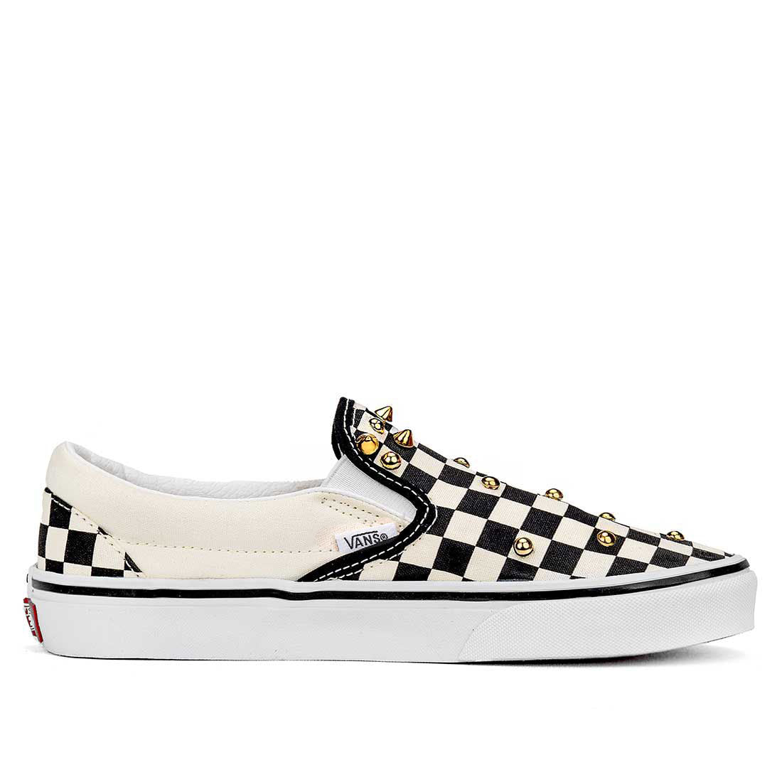 le Vans Slip-on a personalizzate caratterizzate dalle Borchie oro che vengono applicate una ad una a mano dalle nostre artigiane.